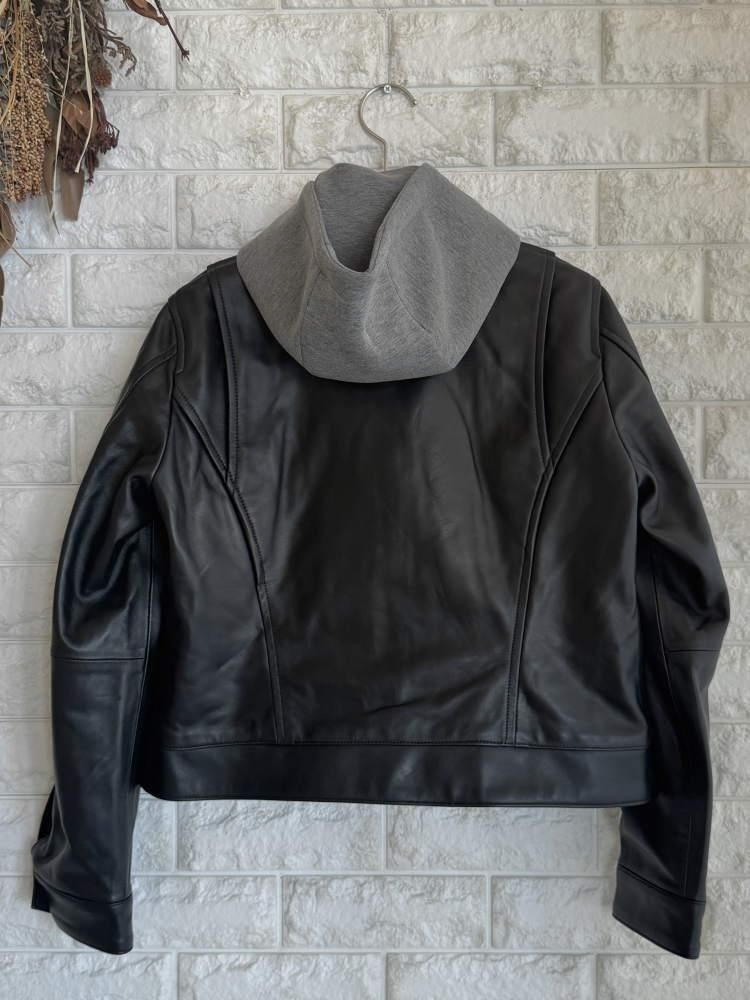 しっとり柔らかで上品な艶のあるラムレザーです。着た瞬間から身体に馴染みました。取り外しが出来るフードも暖かく、中は薄着で良さそうです。シンプルだからこそ絶対使える1着。小柄で痩せてるのでアウター選びは難しいのですが、これは買って大正解でした!