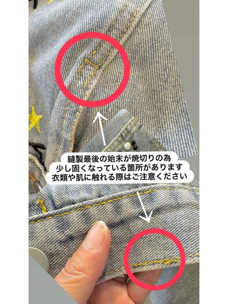 Renault(ルノー)ヴィンテージ風パール&英字刺繍短丈デニムジャケット