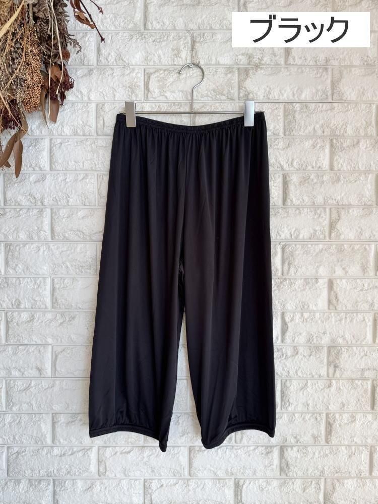裾広がりのやわらかい素材のワイドパンツのインナーに便利なペチコートパンツです。