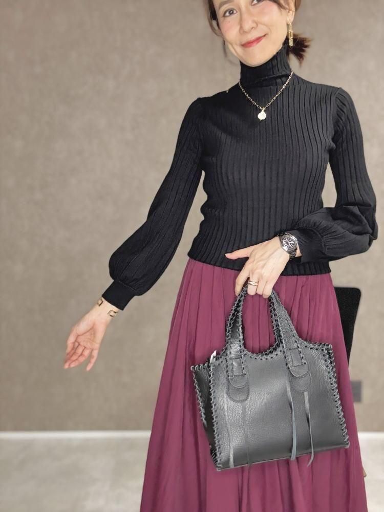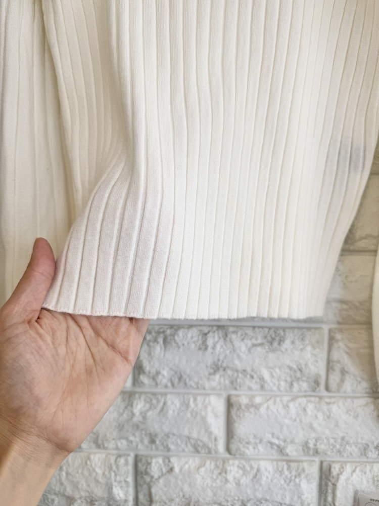 着心地の良さとシンプルだけど可愛らしいシルエットに惹かれて3年連続で購入しています。 黒、グリーンに続いて今回はグレージュを購入しました。柔らかく優しい肌馴染みのいいカラーでとても気に入っています。 素材はチクチク感は全くなくしっとりもちっとしています。伸縮性に富んでいて見たよりもゆとりがあります。袖の膨らみ加減が絶妙で一枚で着てもオシャレなニットです。 秋から春頃まで長く使えるので色違いで購入する価値はあります!