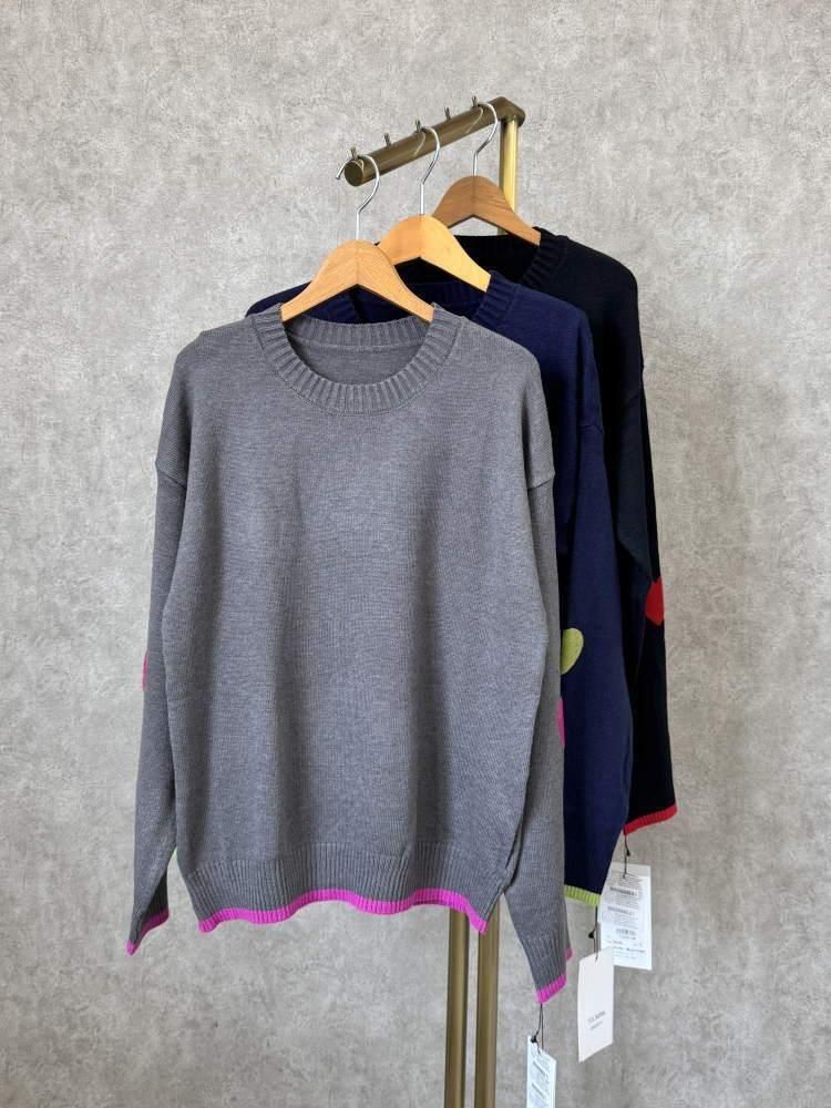 TOLNERA(トルネラ)byPriority ハラコ風ハートエルボーパッチ配色丸首ニット