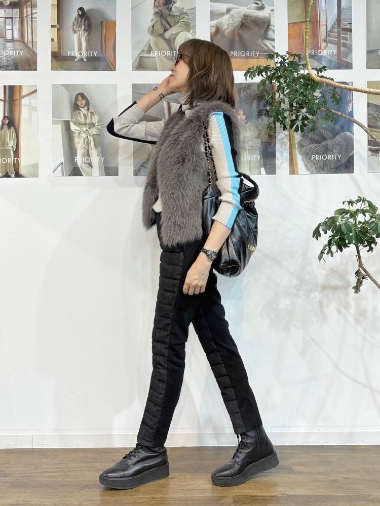 アイボリーのファーベストを探していて、こちらを購入しました。まずめちゃくちゃ軽いです。キラキラも程良く、ファーの素材感もお値段以上で高見えします。キレイめからカジュアルまで合わせられるのでヘビロテ間違いなしです。