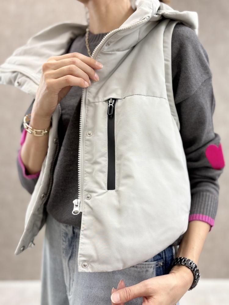 まさえちゃんとまひろちゃんのライブで購入を決めました。ラス1でしたライトグレー…可愛いです。暖かいです。昨年も同様のダウンベストがあったと思うのですが、直ぐにSold Outになりゲット出来なかったので、今年こそと狙ってました。ライブ中ご本人達はグタグタで…と謝ってらしたけど、ご説明よくわかりました。 デザインも質感もホントにステキでお気に入りです。やはりリサセレクトは間違いありません。黒もカーキも捨てがたいくらいどのお色も可愛いです。