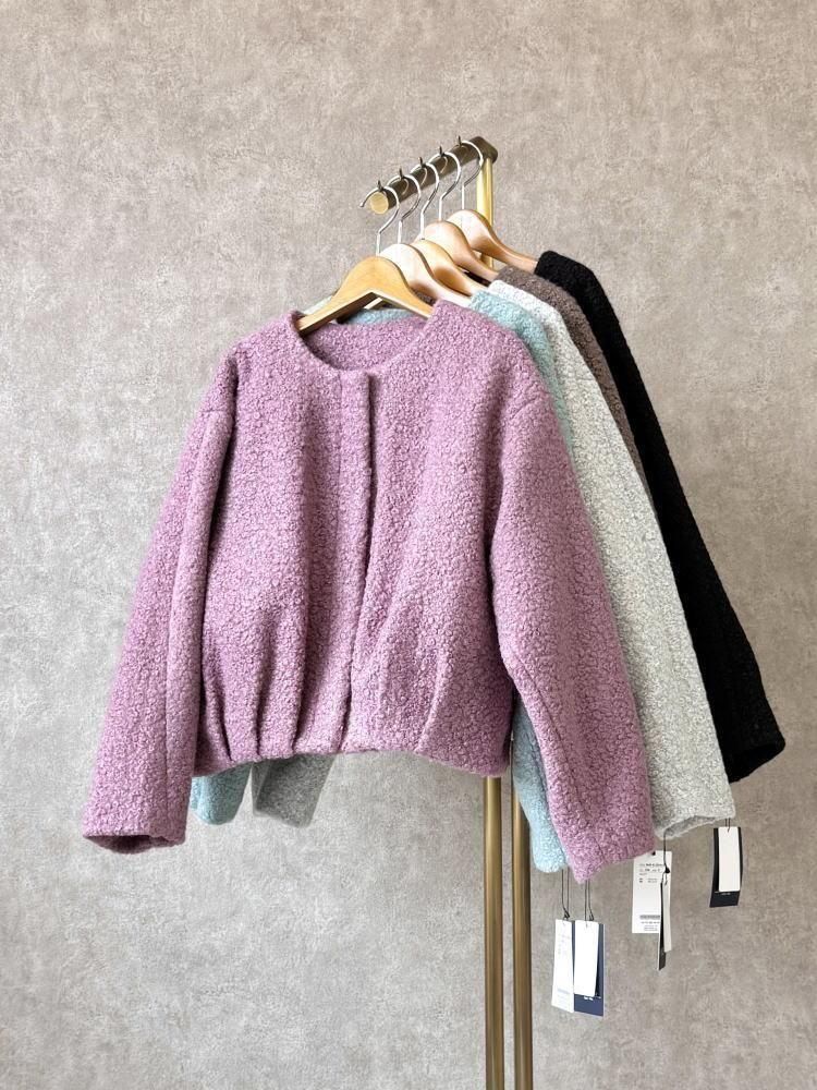 ATELIER SIX(アトリエ シックス)フェルト風ボア丸みノーカラーショートジャケット