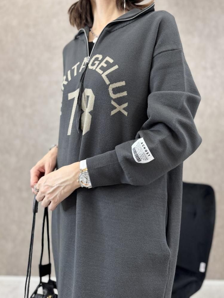 【メーカー完売のため再入荷なし】AGNOST(アグノスト)ハーフジップもっちりソフトニットロゴワンピース