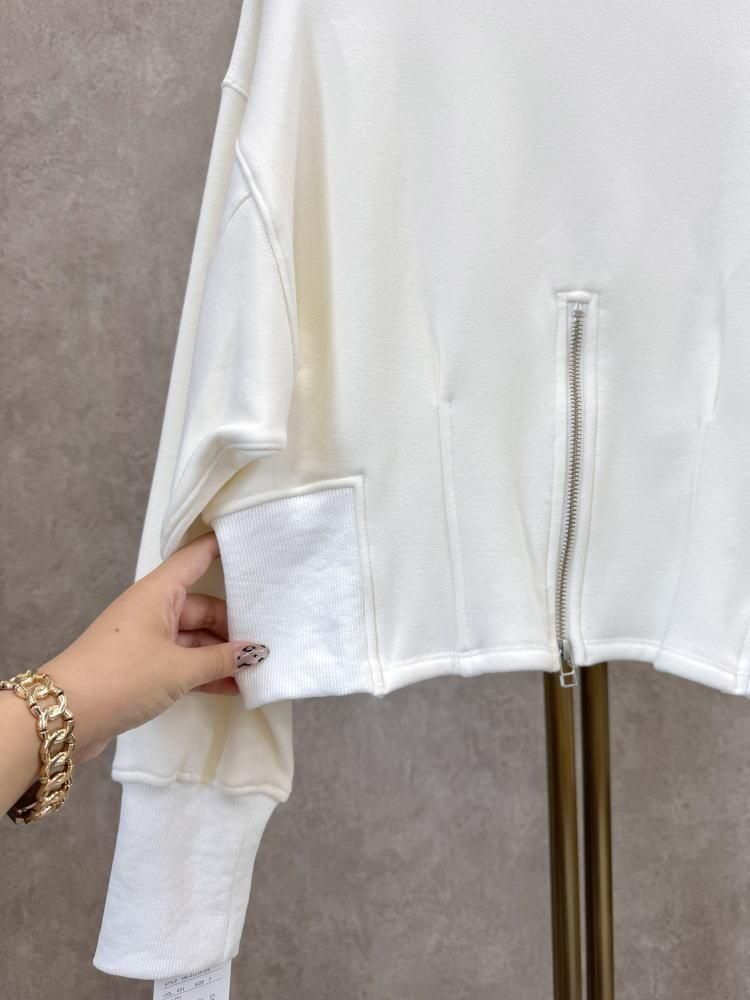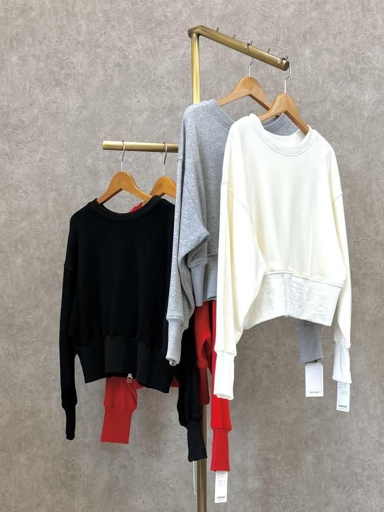 ante aciem(アンテアシーム)後ろジップ裾袖リブ切替短丈裏起毛スウェット