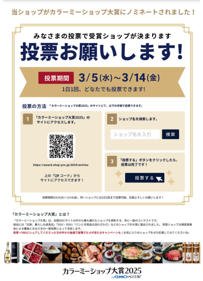 一般投票期間中、投票したショップをハッシュタグ#カラーミーショップ大賞2025をX(旧Twitter)に