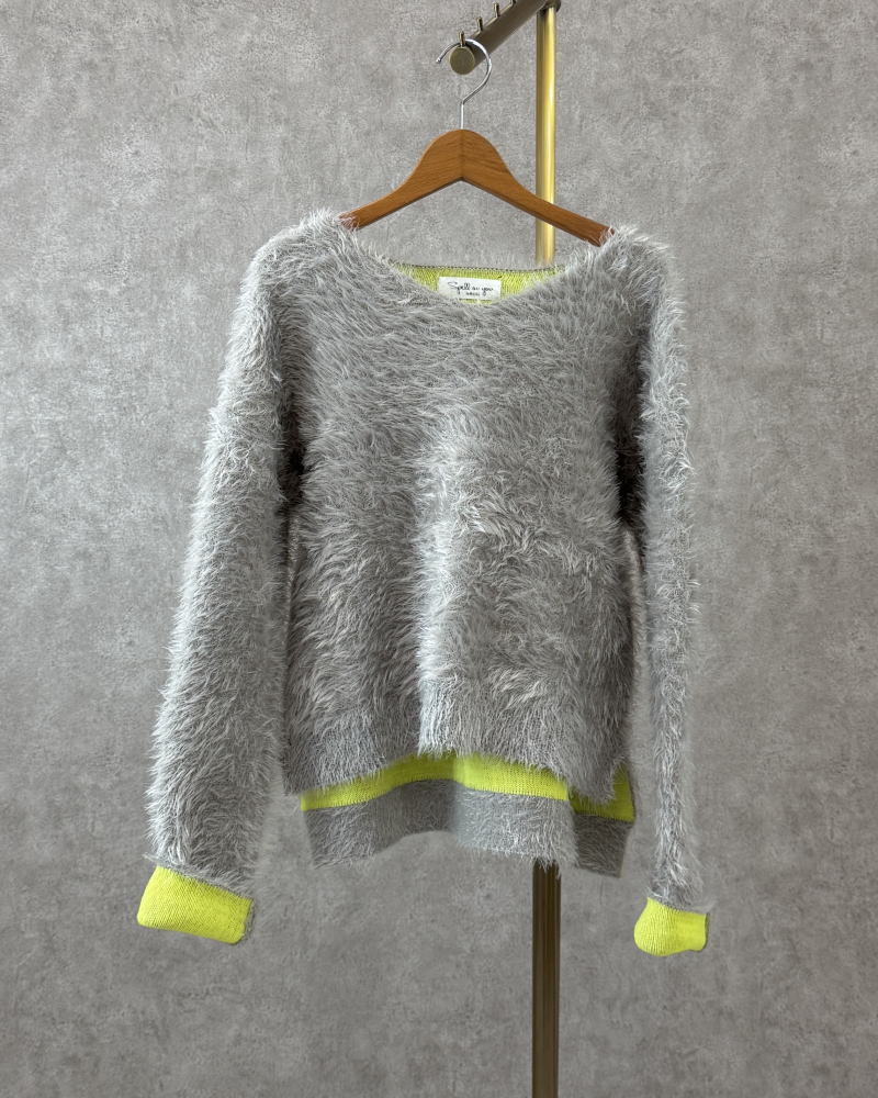 オリジナルブランドSpell on youからふわふわ毛長シャギー配色Vネックニットが発売開始!