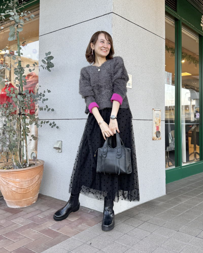 そして大人の抜け感を兼ね備えたシャギーニットです。