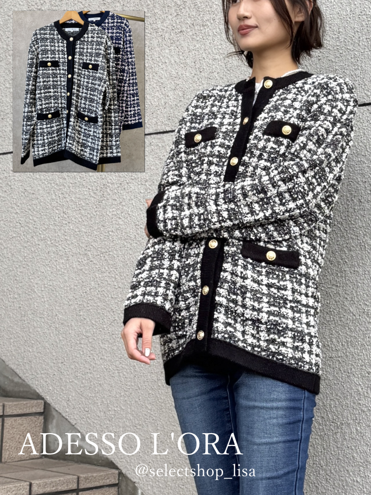 C.C.CROSS(シー・シー・クロス)金ボタンニットツイードカーディガン